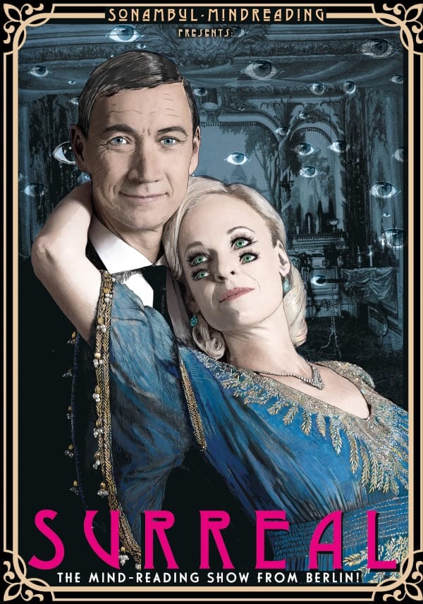 Herzlich willkommen in der surrealen Welt von Roman Maria von Thurau und Vivian. Die zwei Hellsehenden aus Berlin bieten ein überraschendes, traumhaftes und höchst luzides Show-Erlebnis, das Sie beinahe um den Verstand bringt!
