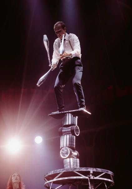 Joachim Vlerick ist ein wahrer Rola Rola - Meister. Wenn er auf dem immer höher werdenden Turm aus sich drehenden Rollen und Brettern balanciert, hält das gesamte Publikum den Atem an. Seine Konzentration und sein Gleichgewichtssinn sind unglaublich. Schon in Kinderjahren hat er seine Darbietung stetig perfektioniert, mit der er das Publikum in unzähligen Ländern begeistert und sein Talent bei Festivals und Talentshows eindrucksvoll unter Beweis gestellt hat. Seine Darbietung ist die pure Sensation mit Stil – ein Balanceakt, von dem man nicht genug bekommen kann. Halten Sie sich fest. Diese Sensation lässt Sie auf der Stuhlkante sitzen!